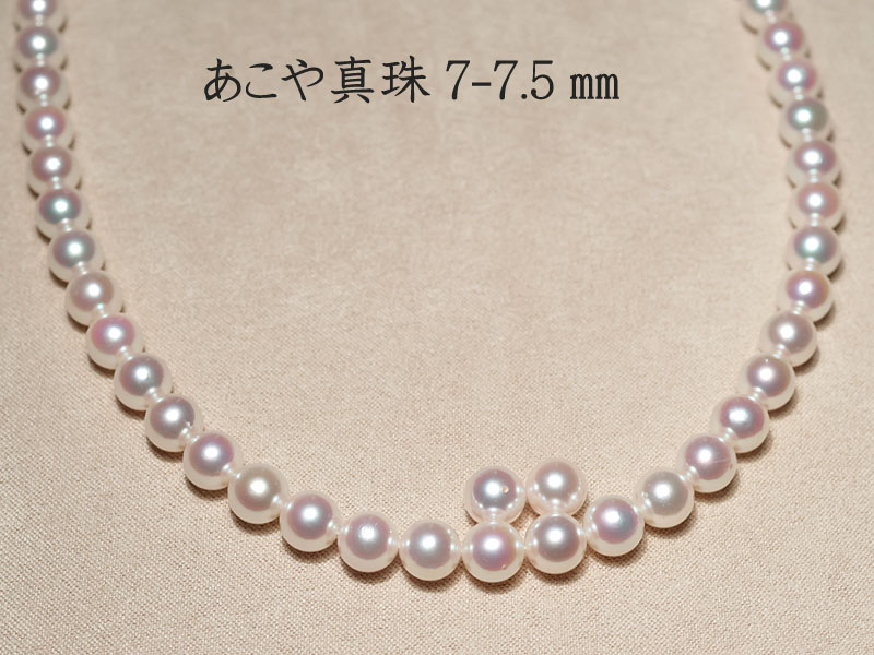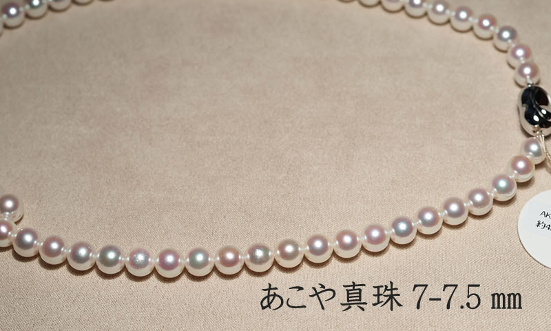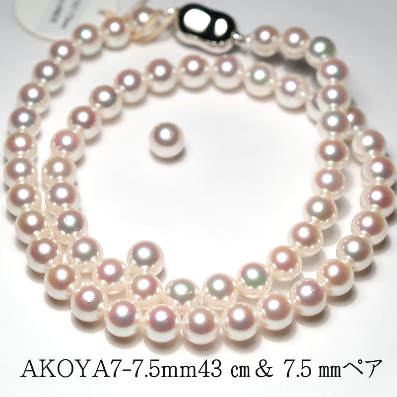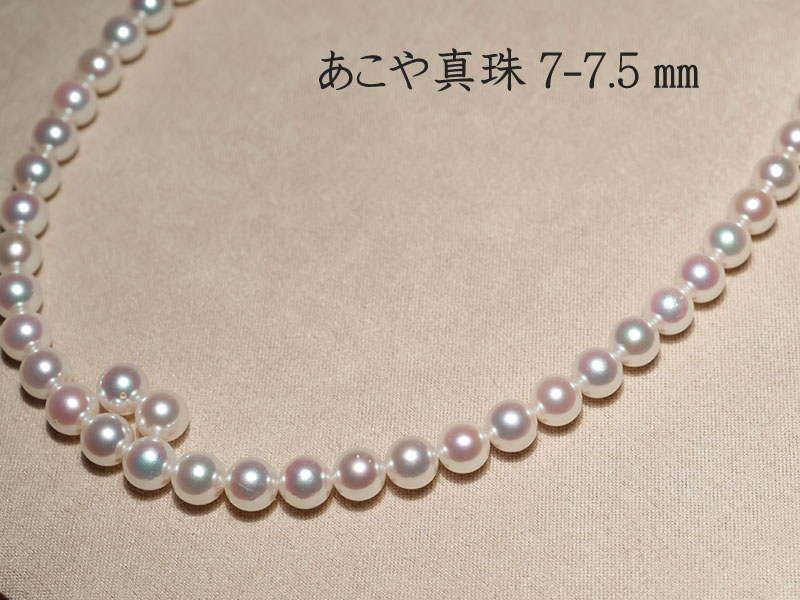 商品名 : パールネックレス7.0-7.5mmアコヤ真珠 留め金具込約43cmと 7.5mmのイヤリングまたはピアスのセット
