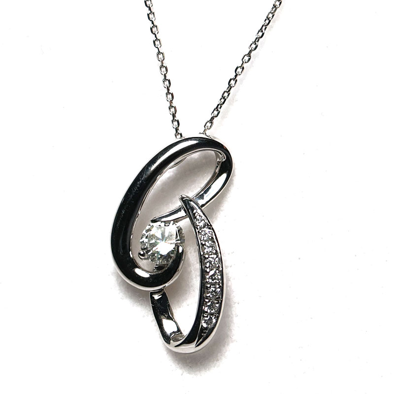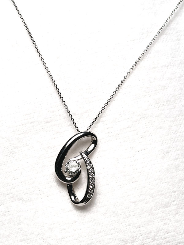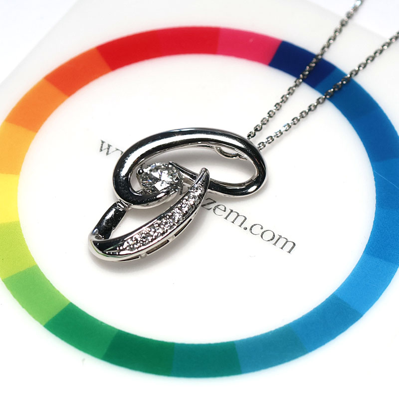 商品名 : ダイヤモンドプラチナペンダントネックレス 中央の0.364ct+0.08ct (8石)トータル0.444ctダイヤモンドの宝石鑑別書付属 50cm長さ調整可スライドチェーン付