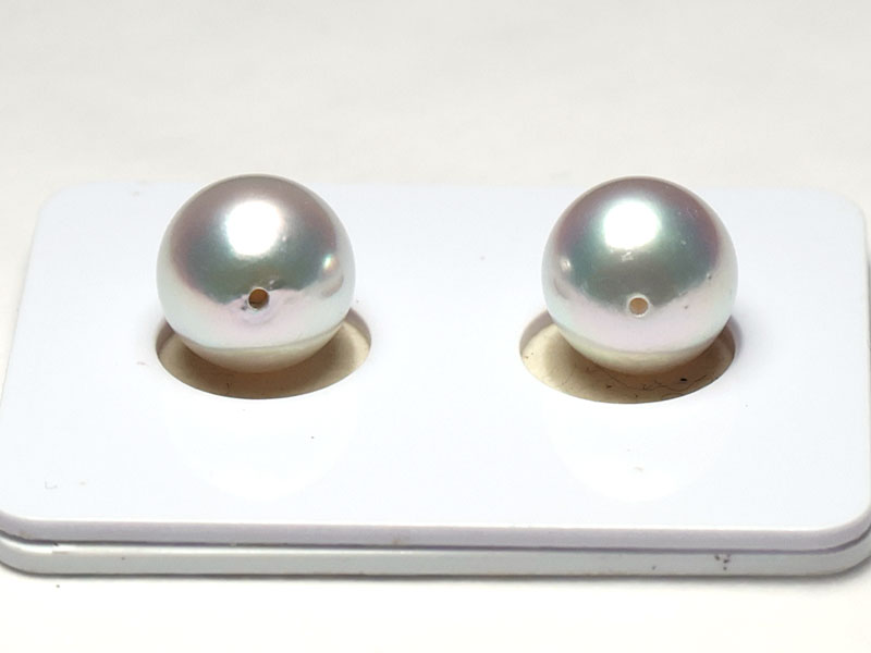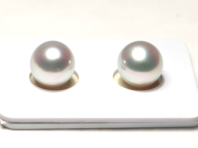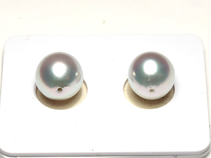 ☆★アコヤ真珠9.2mm×9.7mmペア(2珠)ルース 片穴あき ナチュラルブルー色★☆