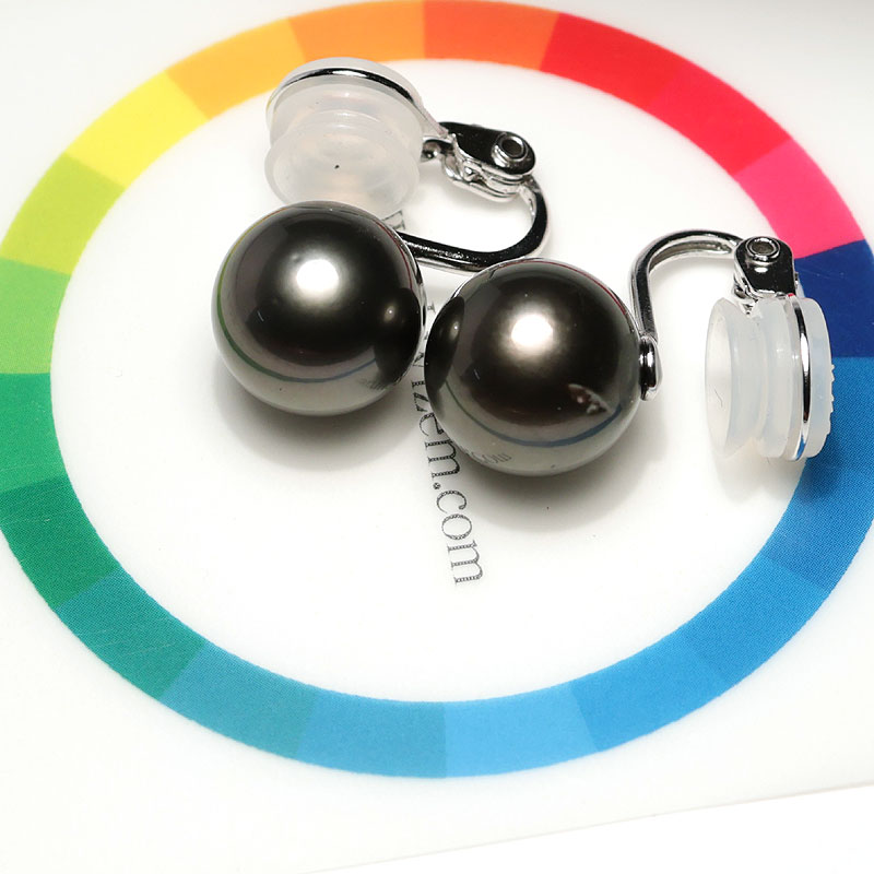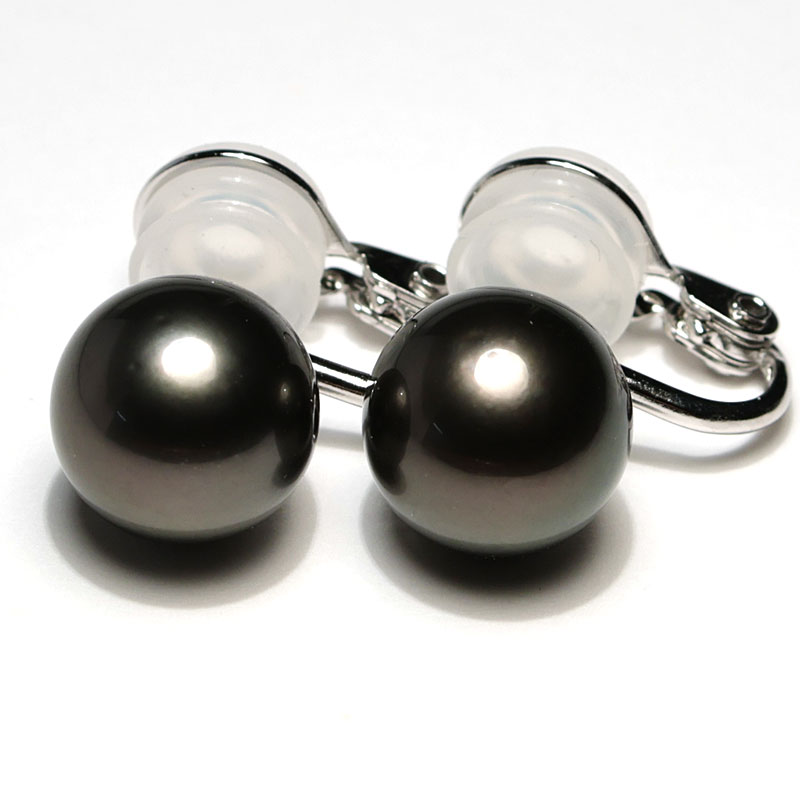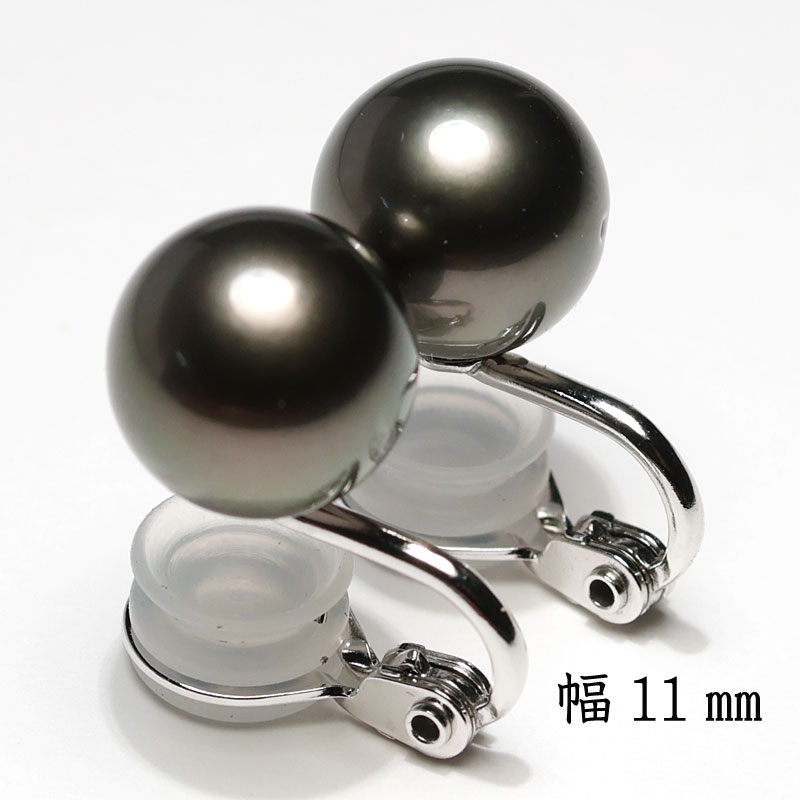 商品名 : ブラックパールイヤリング 黒蝶真珠幅約11.9mmほぼラウンド形 SILVERソフトタッチイヤリング 微調整可