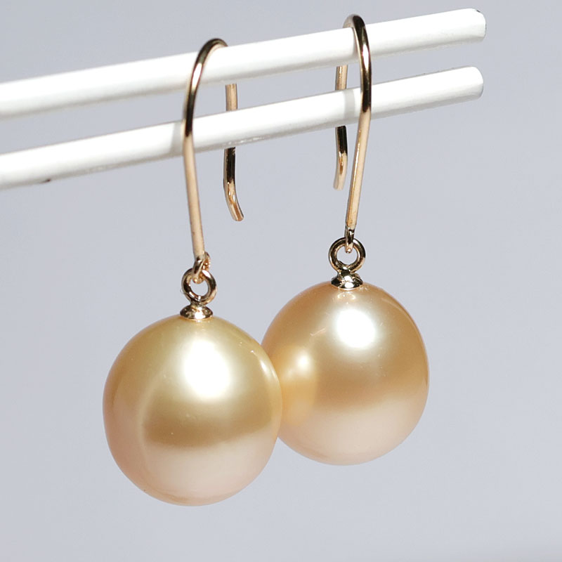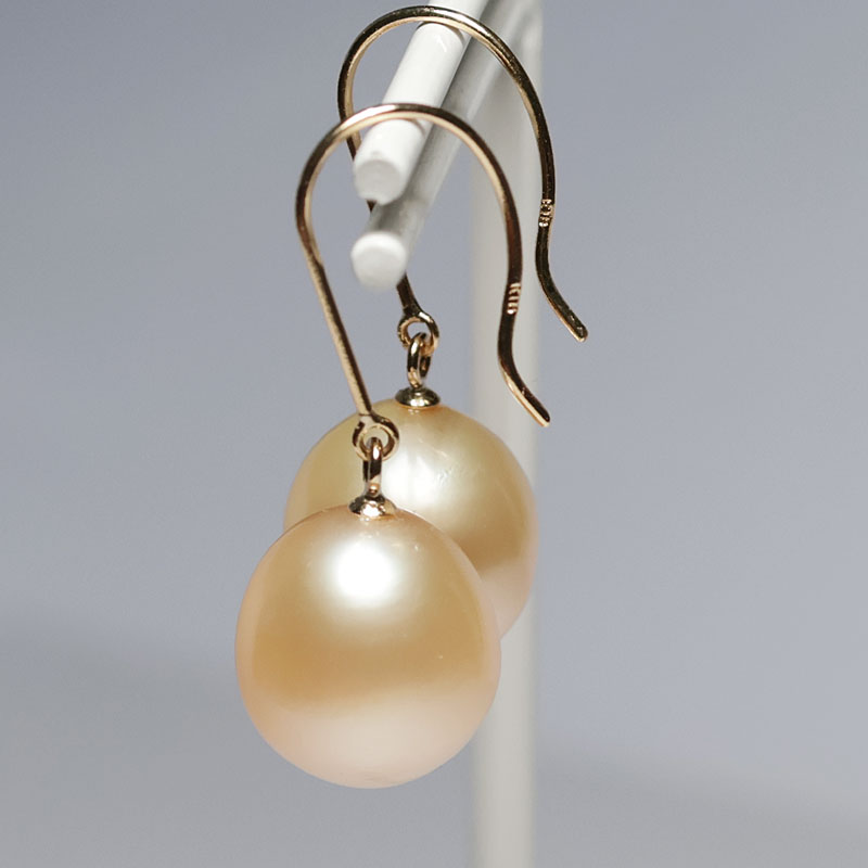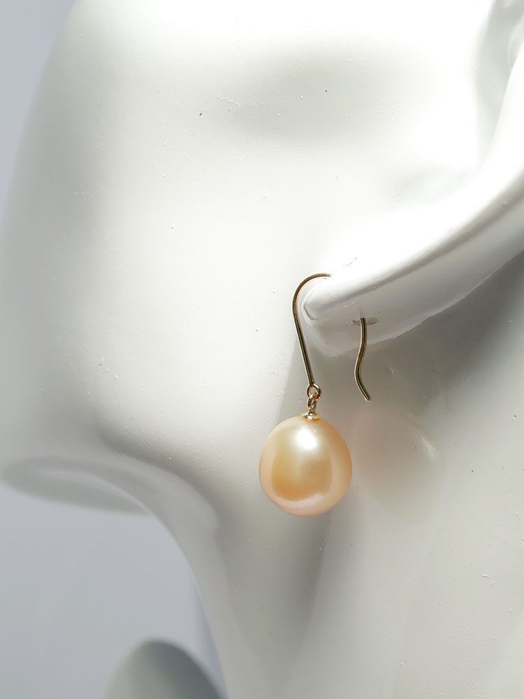 イエローゴールドK18つりばり型L、 耳穴からパールまでは15mm、サービスのシリコンキャッチ付