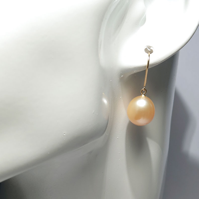幅10.5mmと大きく.美しいGOLDパールピアスです。