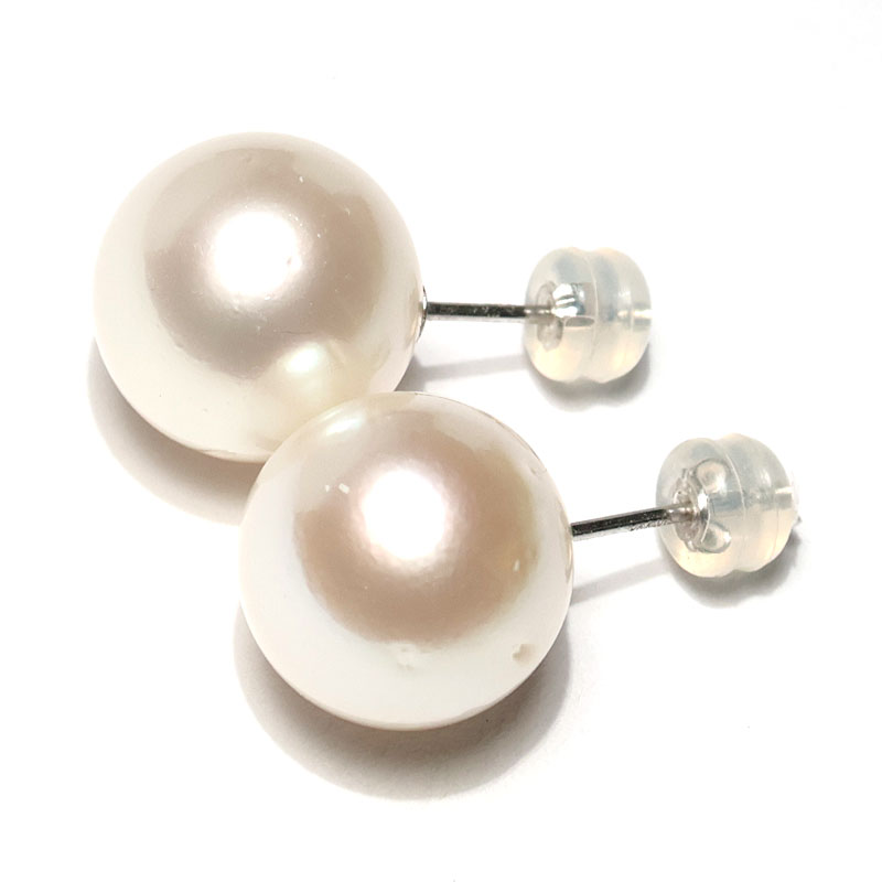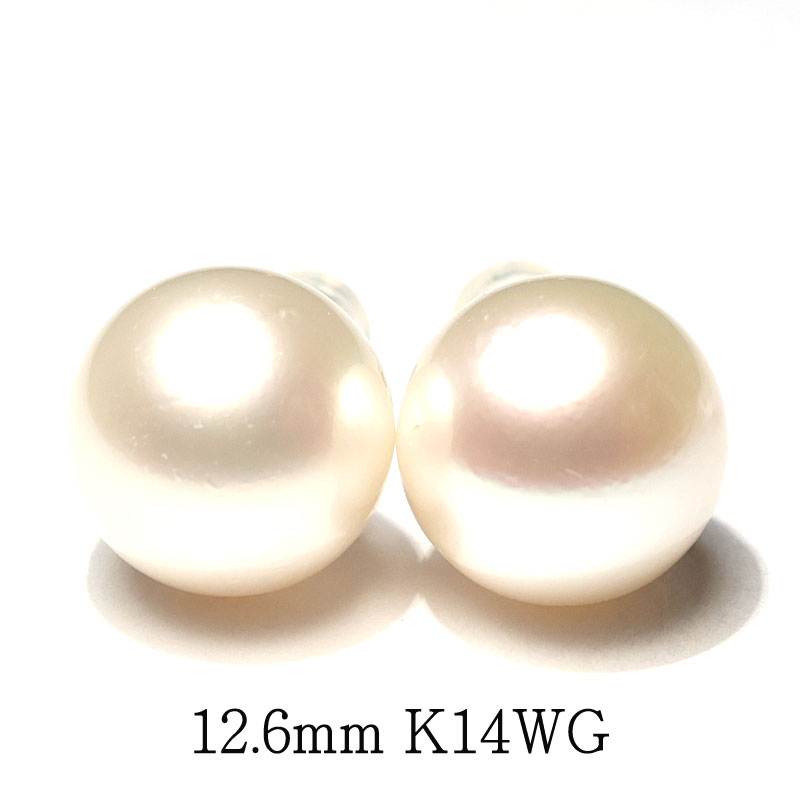 商品名 : ピアス 白蝶真珠ラウンド形 12.6mm ホワイトゴールド製スタッドピアス K14WG