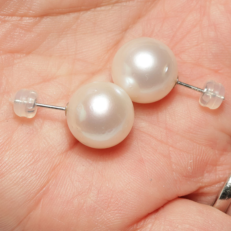 ビックサイズ12.6mmホワイト色のパールピアスで華やかに!
