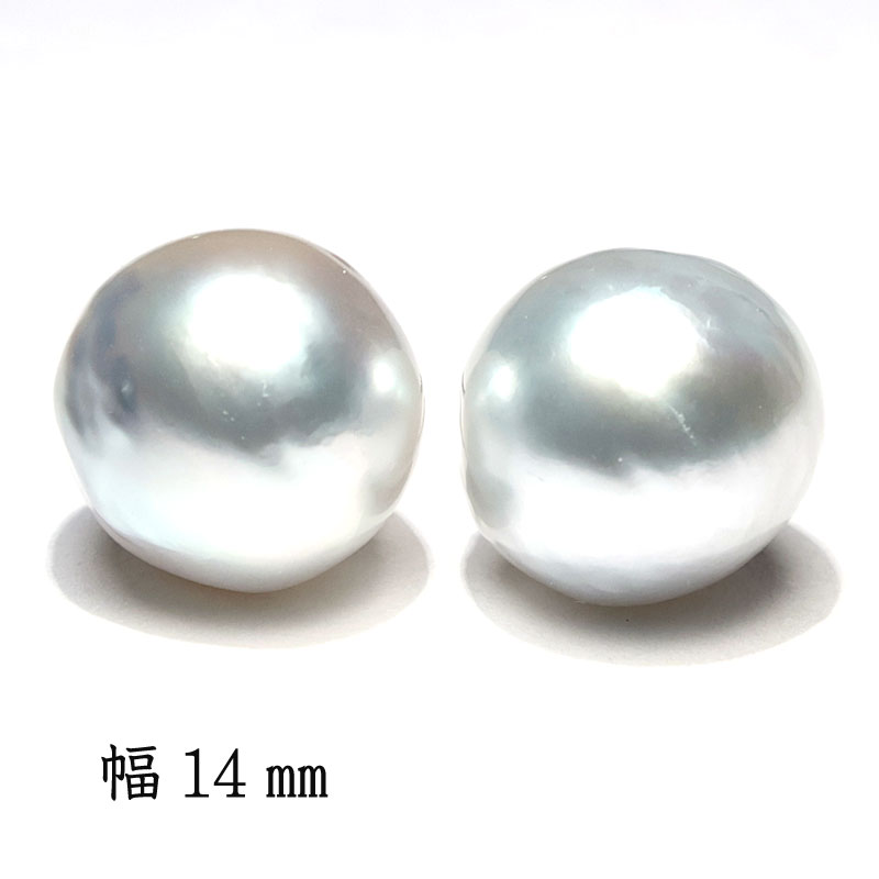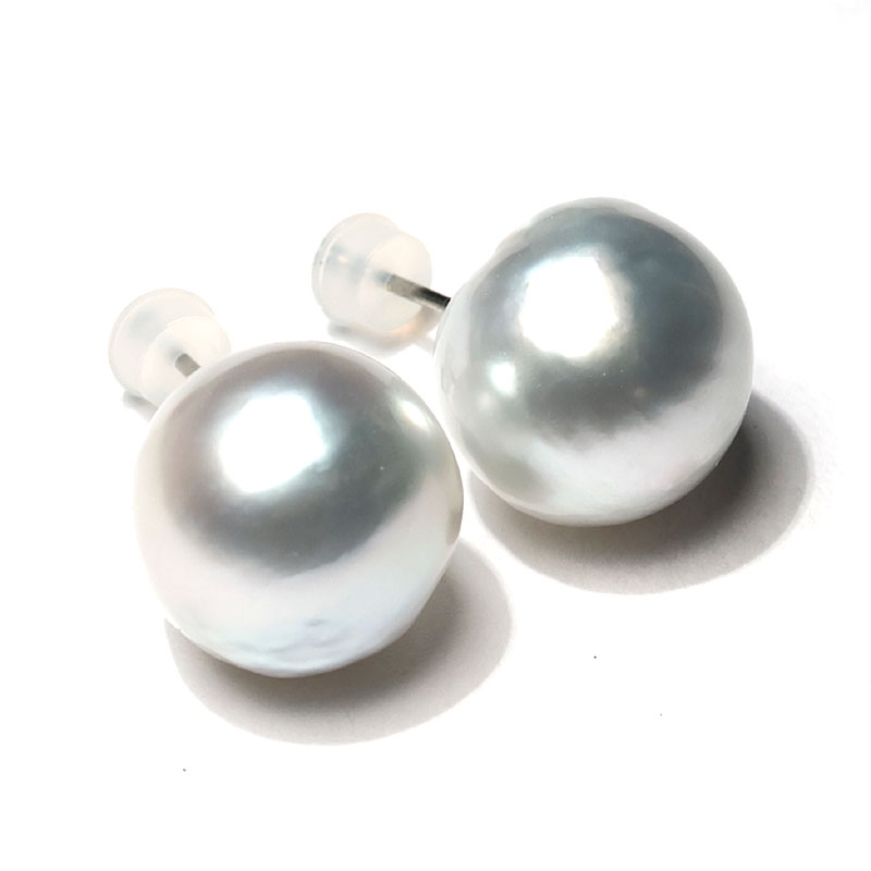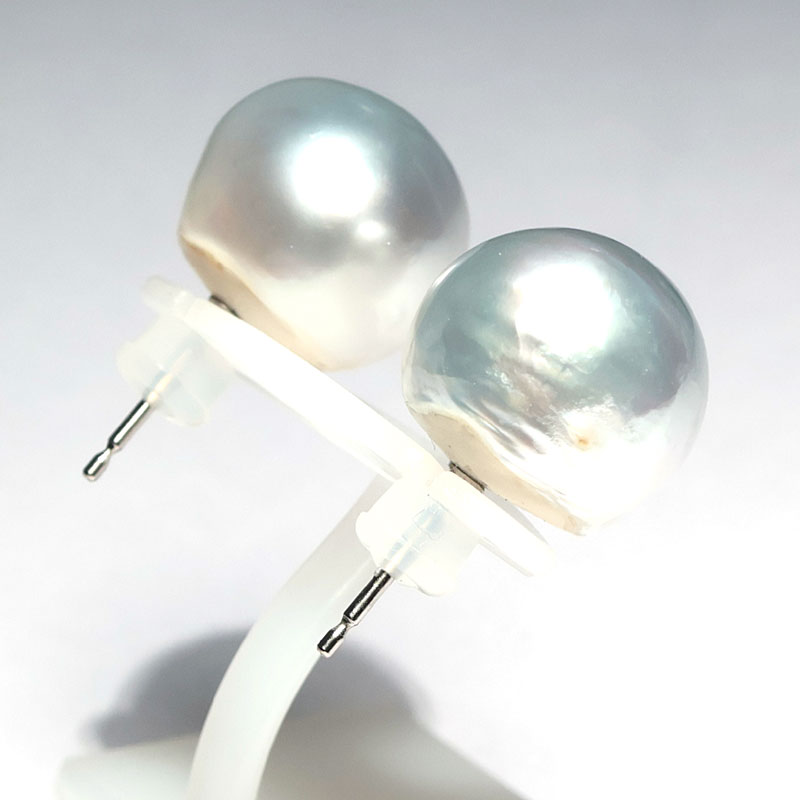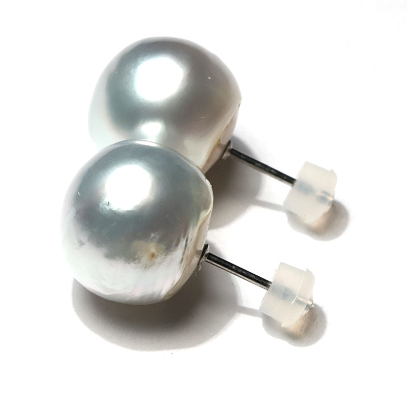 商品名 : ピアス 白蝶真珠 バロック形 幅14mm チタン製スタッドピアス テリ・光沢良い 海が育んだ自然の形状が楽しい
