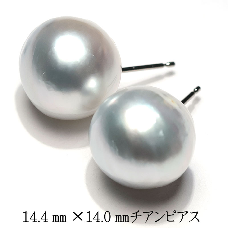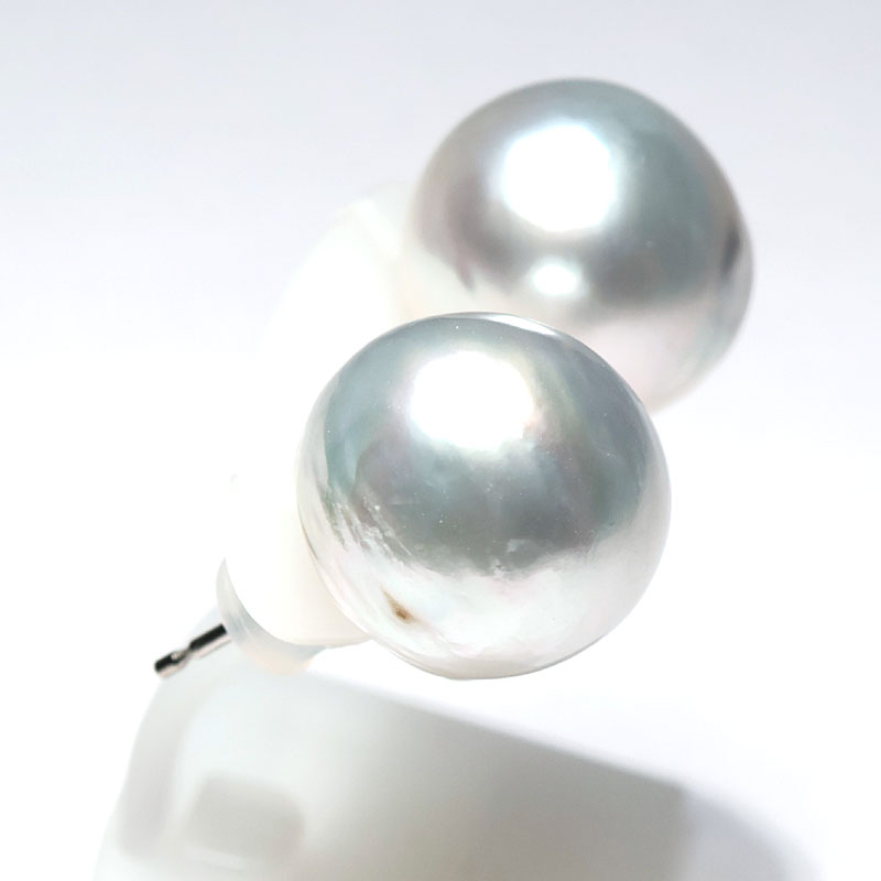 ビックサイズ14mm青色を帯びたホワイト色のパールピアスでお顔周りを華やかに!