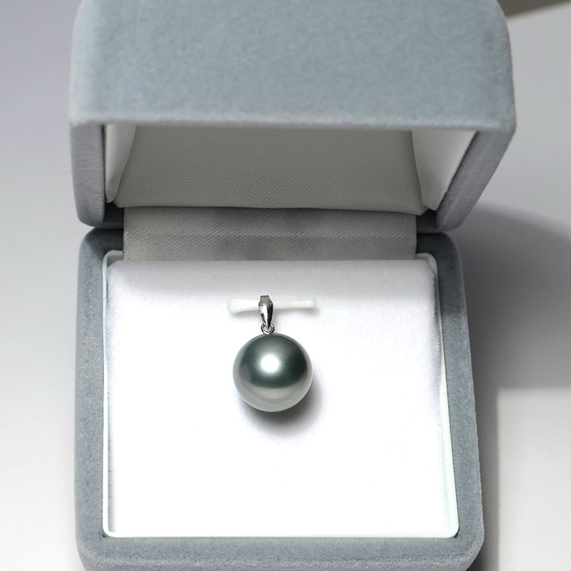 商品名 : ブラックパールpt900シンプルペンダント 黒蝶真珠 12.3mm シックなグレー色(ペンダントのみ、写真のチェーンは別売りのアズキカットチェーン)
