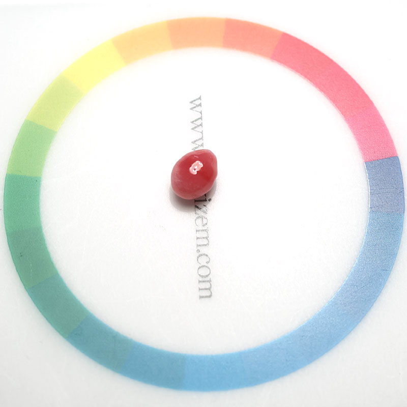 PCの画面上では、赤色がより強く出てしまうようです。実際は一段浅い色とお考えください。また、比較用にいくつかコンクパールをならべた写真も掲載ございます。参考にしていただきたくお願いします。
