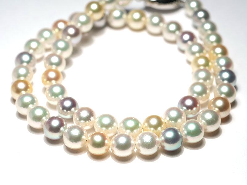 ☆★オールナチュラル色マルチカラー アコヤパール7.5-8mmネックレス ★☆ カラーを楽しむパールネックレス