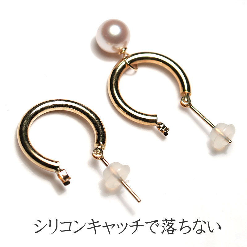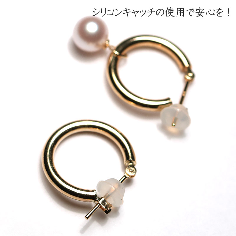商品名 : K18フープピアス外径15mm幅2mm アコヤ真珠K18チャーム付(6mm or 7mm)チャームの取り外し可 シリコンキャッチ付