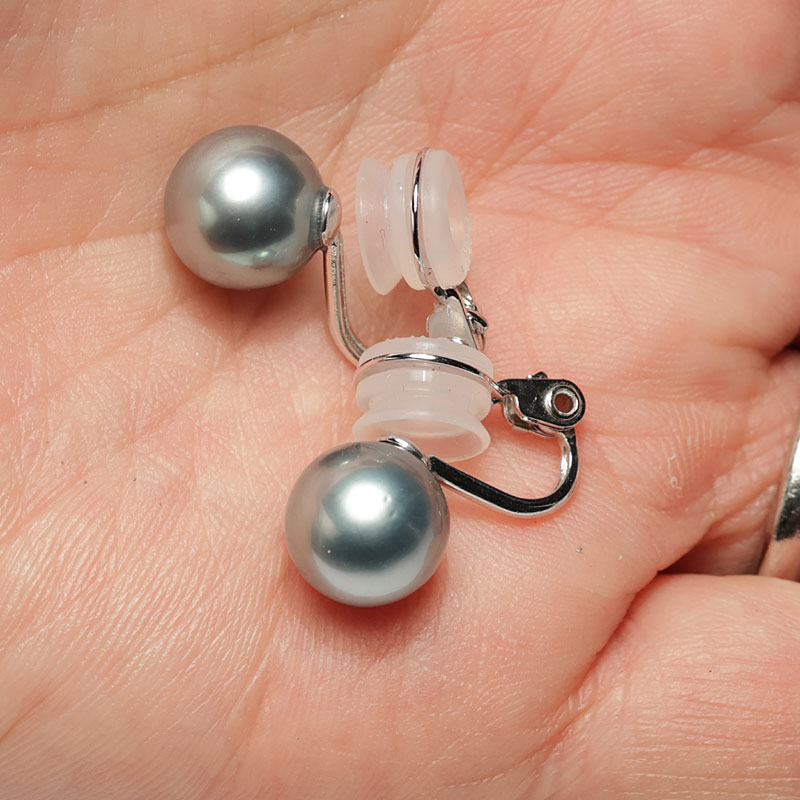 商 品名 : ブラックパールイヤリング 黒蝶真珠9.5mm SILVER微調整可痛くないイヤリング グレー色が良い!