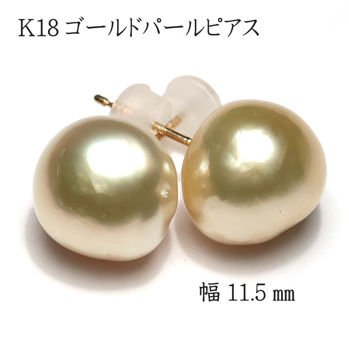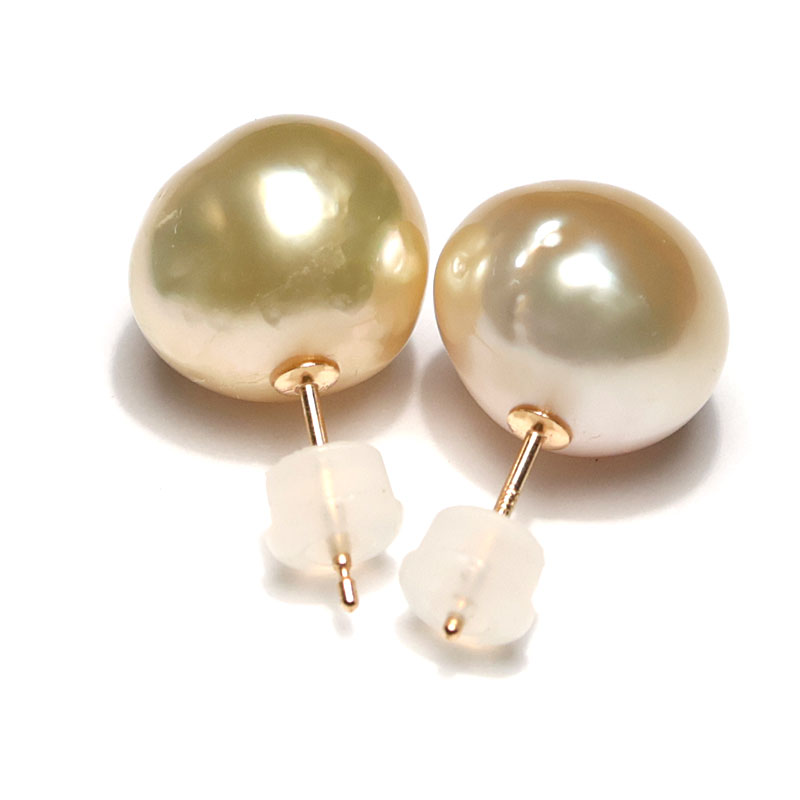 商品名 : ピアス ゴールド色 白蝶真珠バロック形幅11.5mm K18イエローゴールド製スタッドピアス