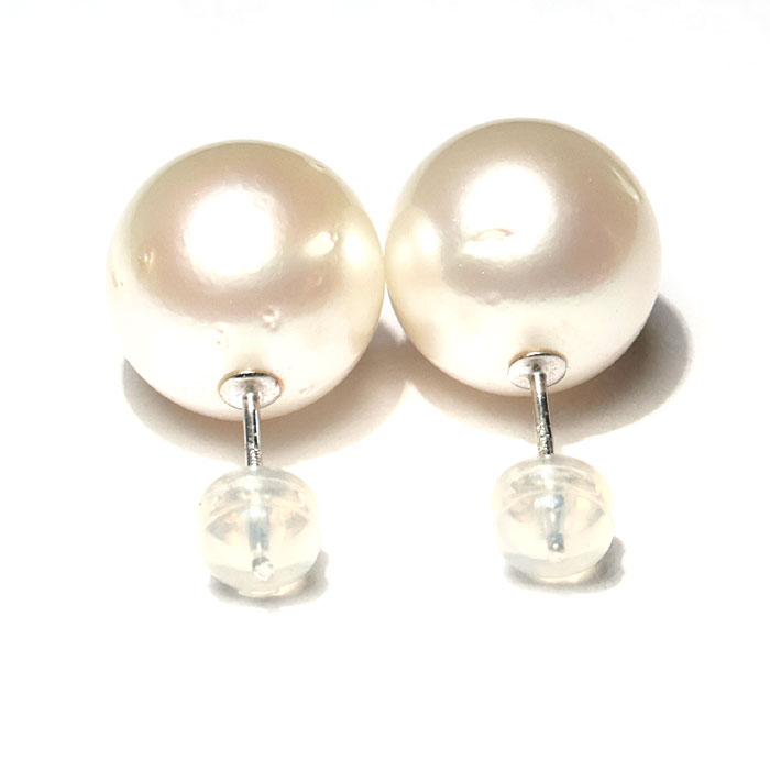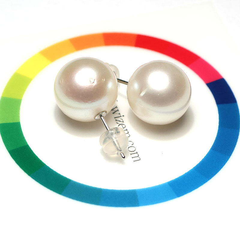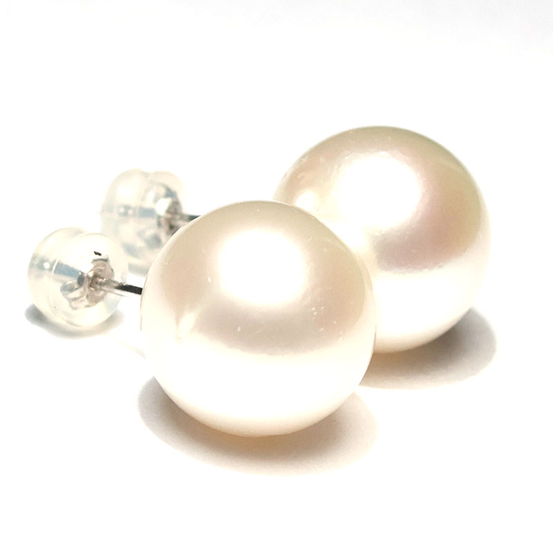 商品名 : ピアス 白蝶真珠ラウンド形 12.6mm ホワイトゴールド製スタッドピアス K14WG