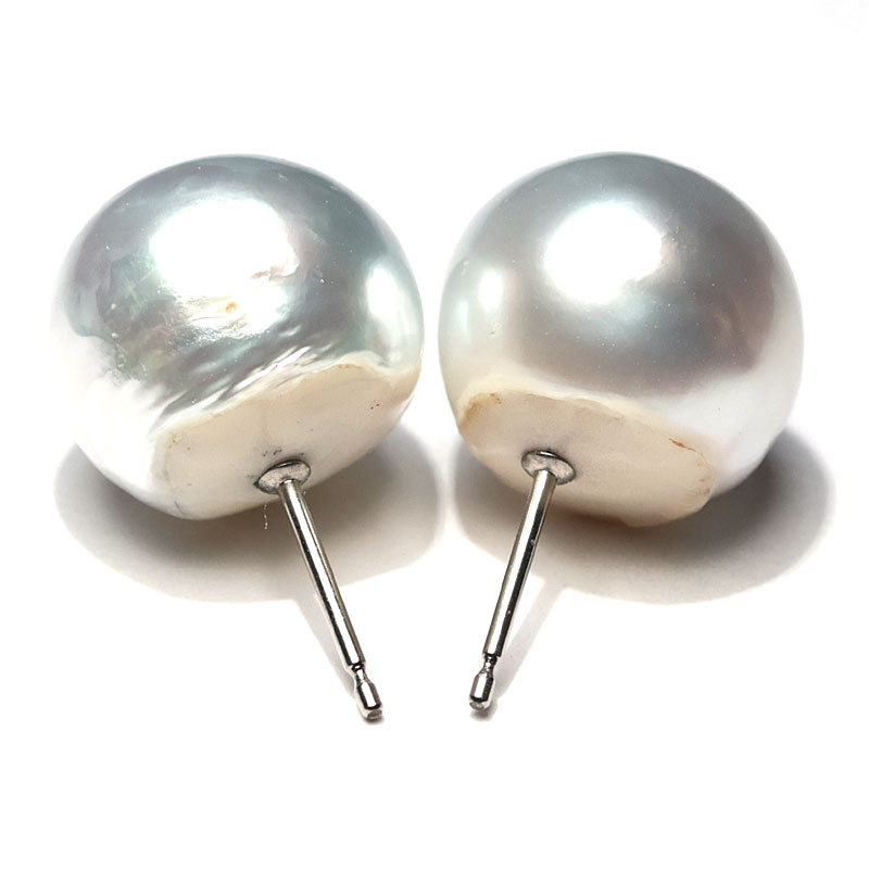 商品名 : ピアス 白蝶真珠 バロック形 幅14mm チタン製スタッドピアス テリ・光沢良い 海が育んだ自然の形状が楽しい