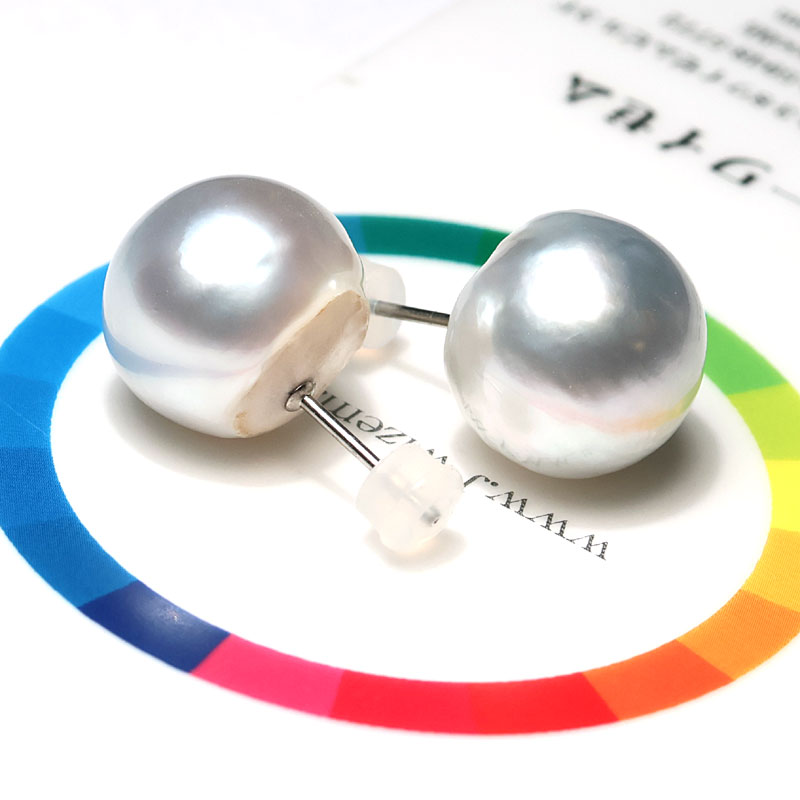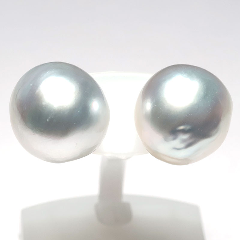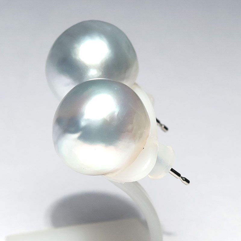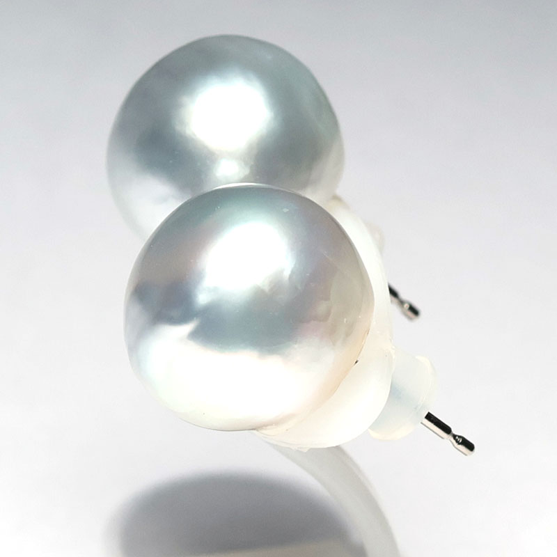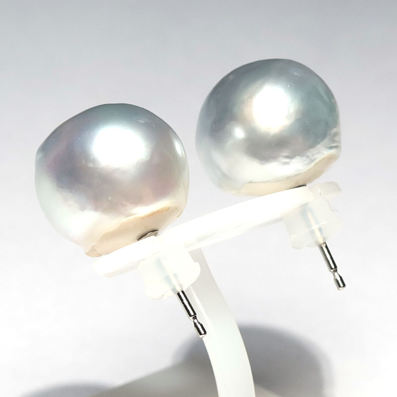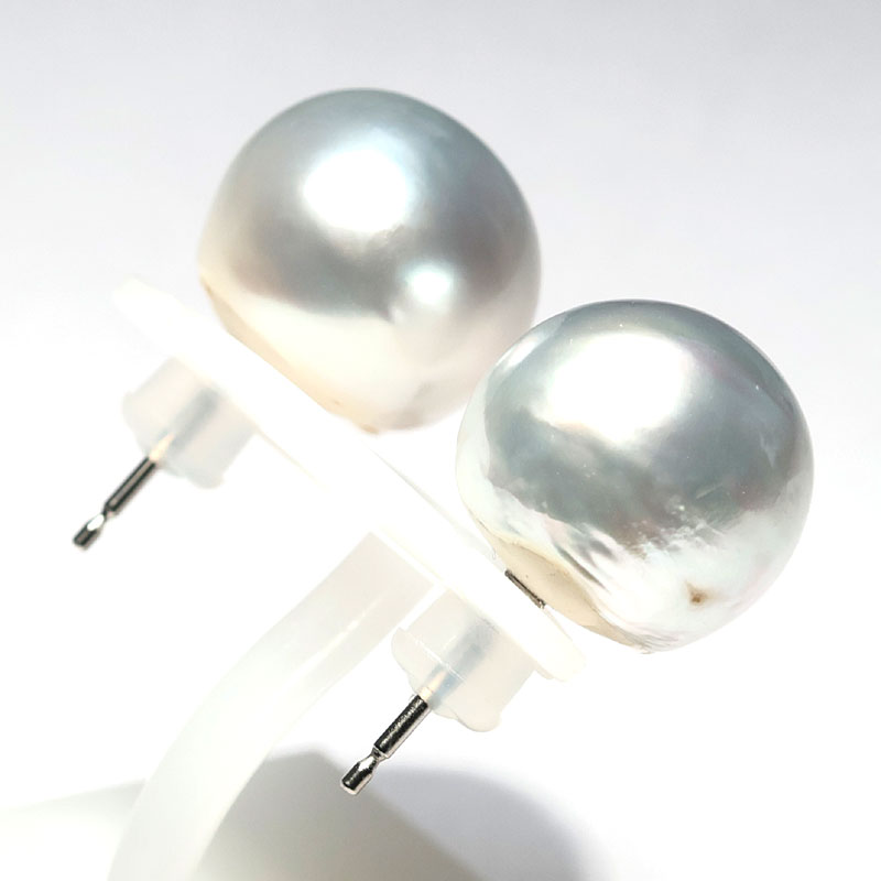 ビックサイズ14mm青色を帯びたホワイト色のパールピアスでお顔周りを華やかに!