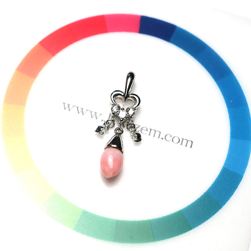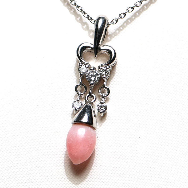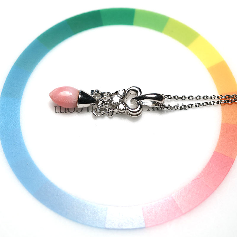 【コメント】優しいピンク色、揺らめく火炎模様が見られます。巻貝の天然真珠にみられる特徴のツイスト、ひねりがあります。身に着けた際は見えませんが、真下からみると白っぽい部分ございます。